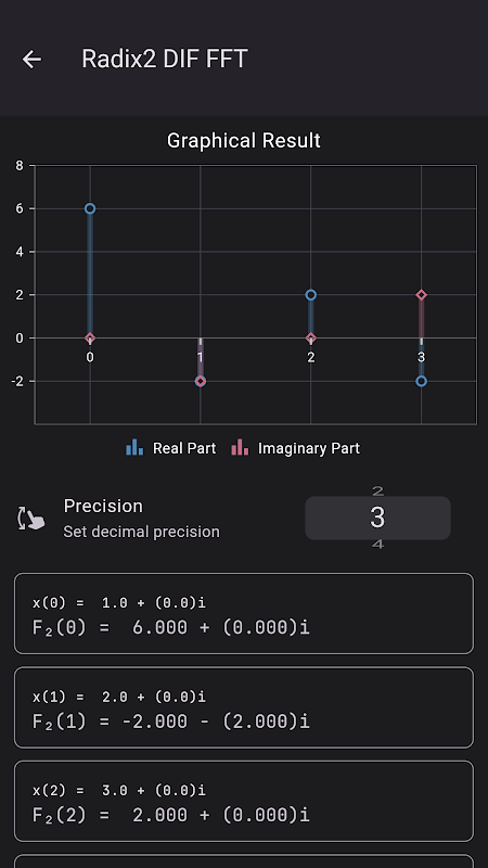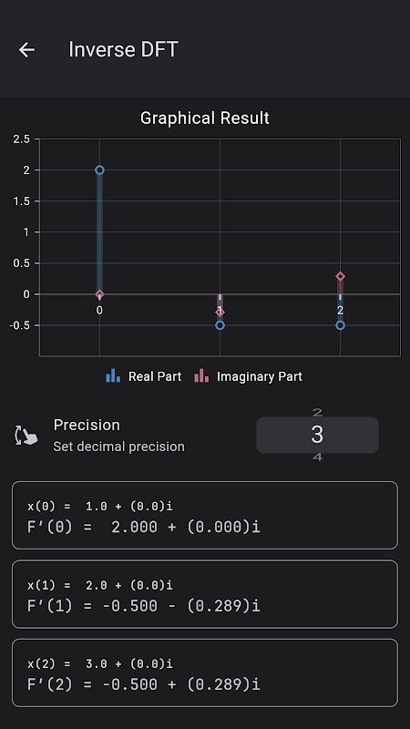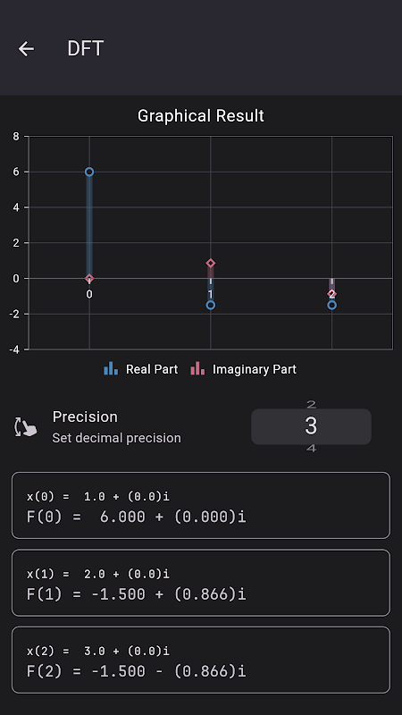 • Risolvi velocemente: calcola istantaneamente la Trasformata di Fourier Discreta (DFT), la DFT Inversa (IDFT) e l'efficiente Trasformata di Fourier Rapida Radix-2 (FFT).