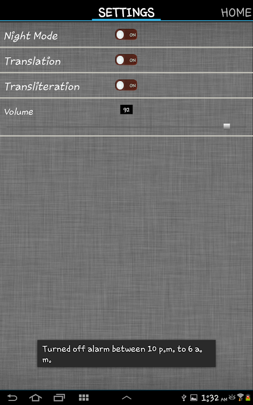 It plays a quiet few second notification that does not cause inconvenience or embarrassment. By default it is set every 15 mins, pronouncing forgiveness "Estighfar". You Can change the timing from 15 mins to 5 Mins or 30Mins or 45 Mins or 60 Mins.