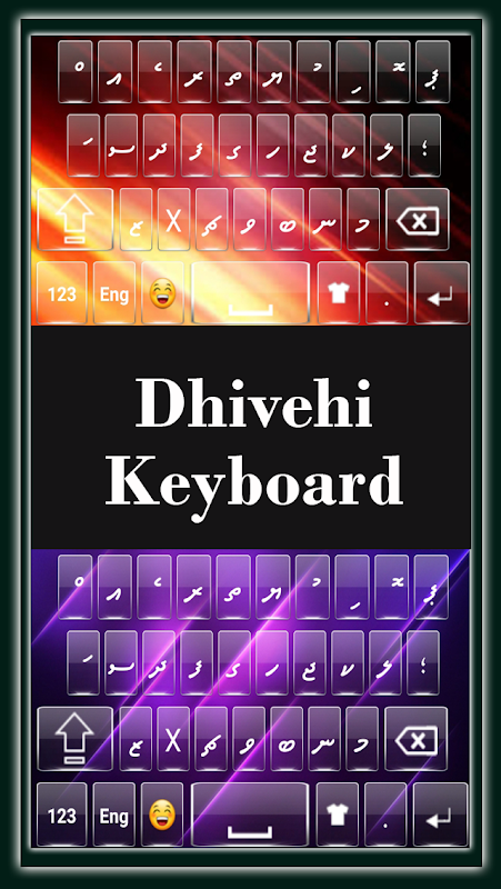 L'app Dhivehi Keyboard può essere applicata al telefono come tastiera con qualsiasi tipo di messaggio di chat per utilizzare Dhivehi Alphabet. La tastiera della lingua Dhivehi ti offre la possibilità di chattare con temi a colori che richiamano l'attenzione ed eleganti emoji. La tastiera Dhivehi è la tastiera più facile da scrivere in Dhivehi e in inglese con una digitazione leggera. Tastiera Dhivehi per tutti noi che amiamo la loro lingua Dhivehi nativa. È inoltre possibile avvalersi della possibilità di modificare i temi di sfondo della tastiera di digitazione Dhivehi in qualsiasi momento e il suo semplice passaggio da implementare in ogni singola applicazione Android con un clic della tastiera nell'app Dhivehi Keyboard.
