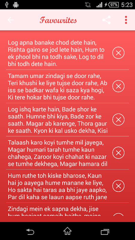 ? Elenco dei preferiti, aggiungere la shayari preferito.