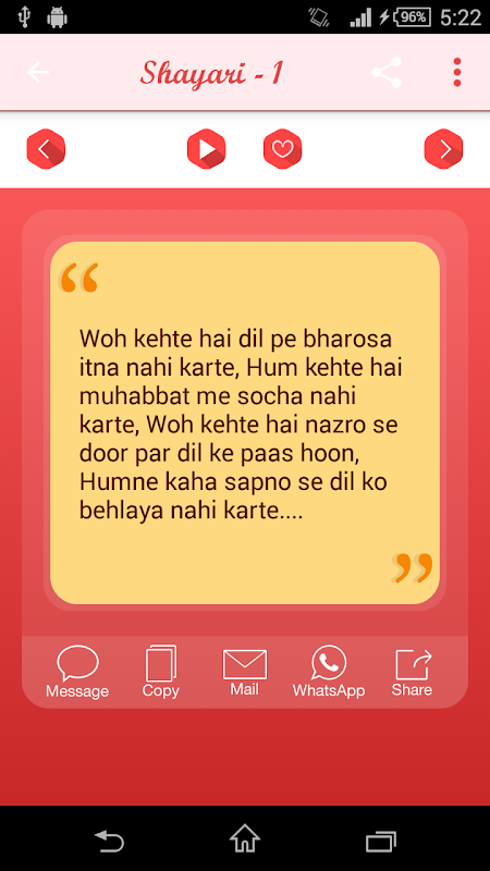 Questa è una grande applicazione in cui hanno ogni tipo di shayari solo in confezione singola. Quindi Utilizzare questa applicazione e godetevi la vostra giornata.