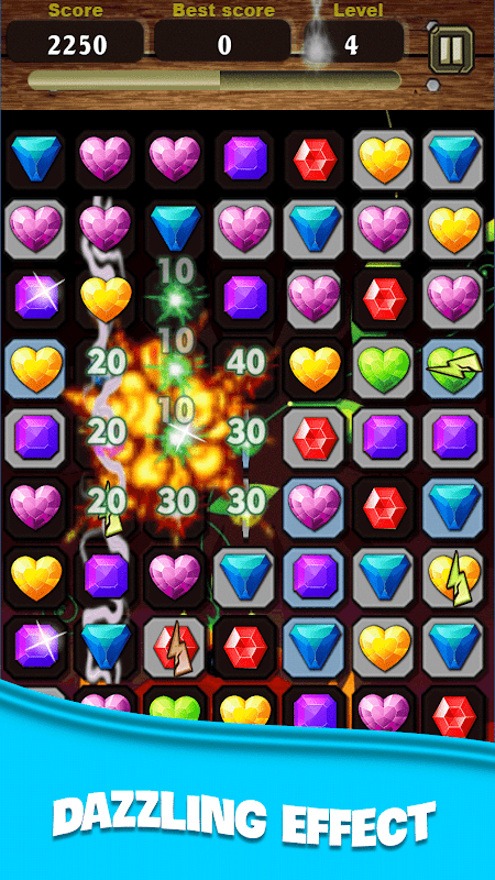 Abbina 4 gemme per creare una gemma esplosiva per far esplodere i gioielli vicini, 5 gemme per Star Diamond che può eliminare le gemme selezionate. A volte ci sono gemme del fulmine che prendono un'intera fila o colonna di gioielli per te. E non dimenticare l'Ultimate Stone, combinando 2 Star Diamond per ripulire il livello per te!