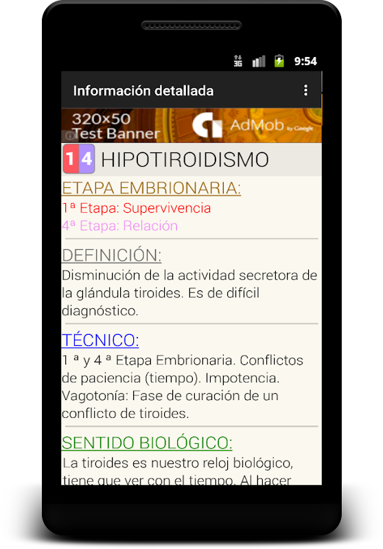Questo nuovo dizionario è basato sulla versione del libro con lo stesso nome qui disponibili a prendere il tuo dispositivo Android. Qui ci sono circa 1300 malattia, la malattia, i sintomi, le parti, organi, sistemi o protocolli per guidare l'utente nel trovare il emotivo / origine conflittuale di malattie. E i suoi riferimenti e gli autori. Questa idea degli studi del dottor Ryke Hamer G., Christian Flèche, Claude Sabbah, Enric Corbera, Enrique Bouron, Eric Rolf, Jacques Martel, Lise Bourbeau, Louise Hay, Ruediger Dhalke, Anne-Ancelin Schützenberger, Alejandro Jodorowsky Angela Hoffman, André Malachane, Bernard Vidal, Christian Beyer, Corine Dewolf, Cécile Meis, Dataille Daniel, Daniel Miron, Didier Escassut, Edouard van den Bogaert, Athias Gerard Jean-Pierre Piret, Josie Kramer, Marc Fréchet Michelle Caffin, Michel Paulus, Montserrat Batlló, Olivier Soulier, Quirico Blonda, Rafael Maranon, Roberto Fradera, Robert Guinée, Georges Lahy, Yves Gautier e ancora un po '. Gli studi e le correnti si riflettono come specificato nella Nuova Medicina, decodifica Biologica la Biodescodificación o Bioneuroemoción. Tutte queste correnti, scientifico e accettato in base al principio che la natura non erra, non essere sbagliato, non esistono nei suoi errori, ma segue un processo basato su un programma ospitato nel nostro inconscio e ci permettono di sopravvivere, proteggere, si riferiscono , spostare, ecc Allo stesso modo, i conflitti sorgono quando siamo entrati incoerenza, cioè, pensare, sentire e agire in modo diverso l'una dall'altra e non nella stessa direzione. Individuazione del disturbo, malattia, sintomo, organo o parte del dizionario, possiamo ottenere un indizio circa il conflitto che viviamo, ma che non siamo a conoscenza.