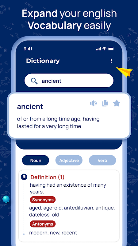 Dizionario inglese: facile da usare con funzioni utili. Il tuo costruttore di vocabolario