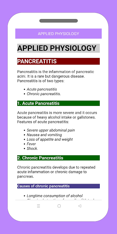 L'app per il sistema digestivo contiene i seguenti capitoli con argomenti comuni.