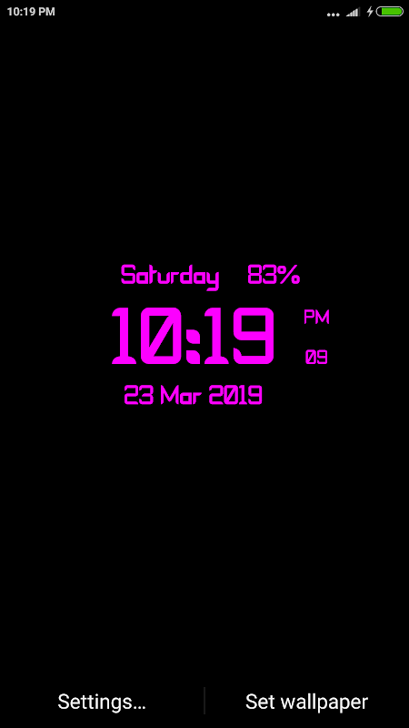 Digi Clock Lwp Mostra l'ora del dispositivo sul display del telefono cellulare utilizzando una selezione di caratteri e uno stile diversi e puoi anche modificare l'orologio con bagliori colorati ed effetti neon.