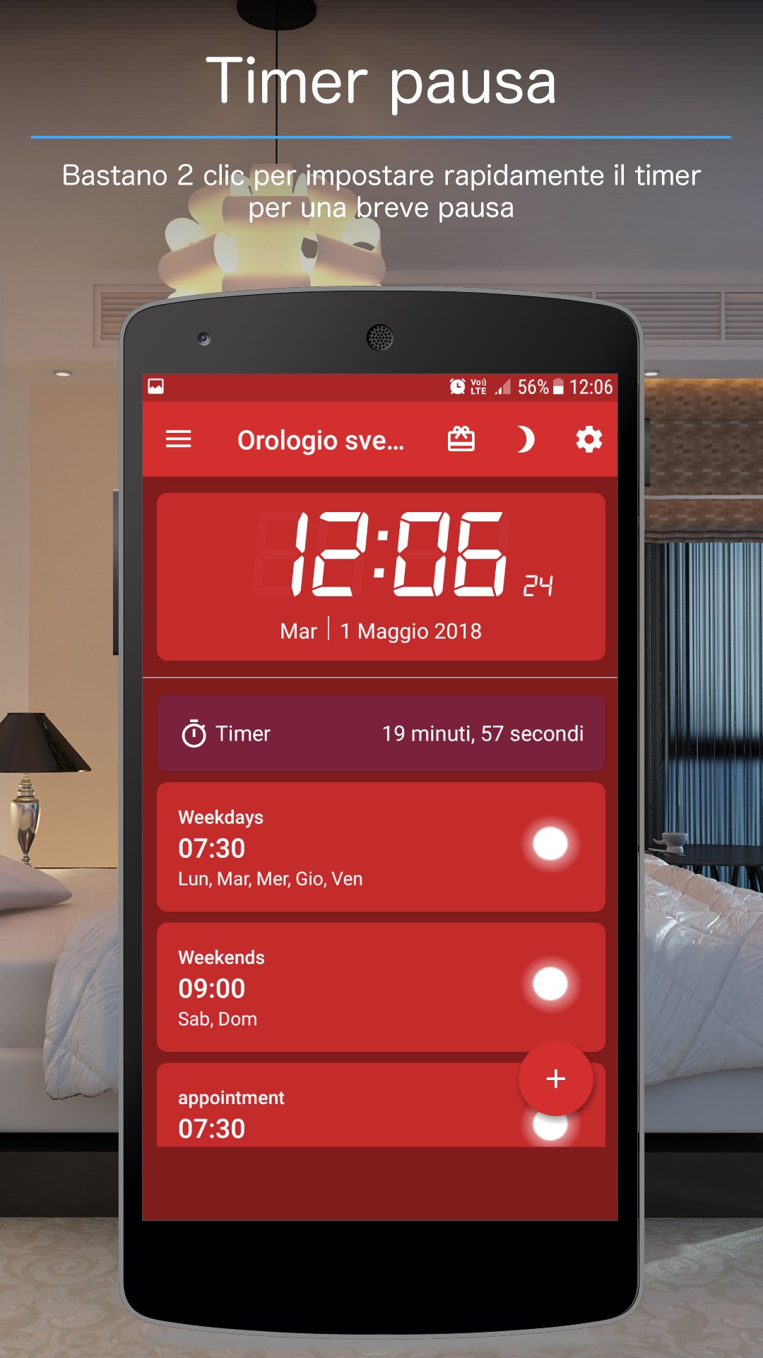 ✔️ Timer Pisolino sulla schermata principale che ti consente di impostare una sveglia rapida in soli due tocchi!