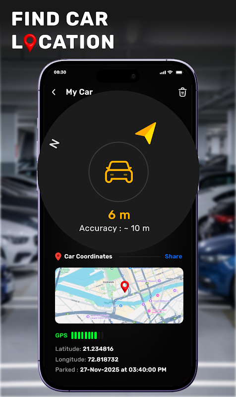 → Posizione in tempo reale – Visualizza la tua posizione esatta con indirizzo chiaro e coordinate GPS precise (latitudine e longitudine).