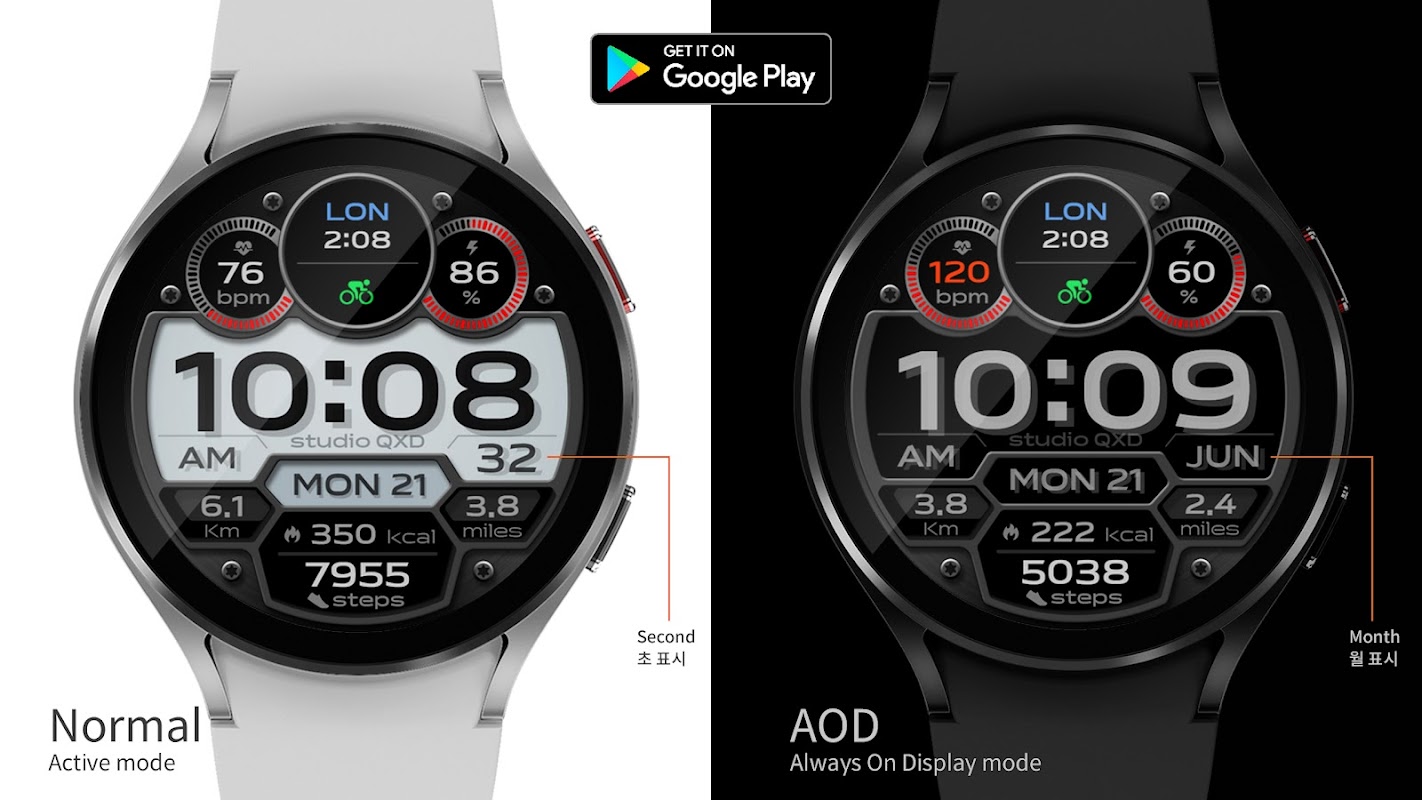 - Visualizzazione del conteggio dei passi, delle Kcal bruciate e della distanza (Km/miglia).