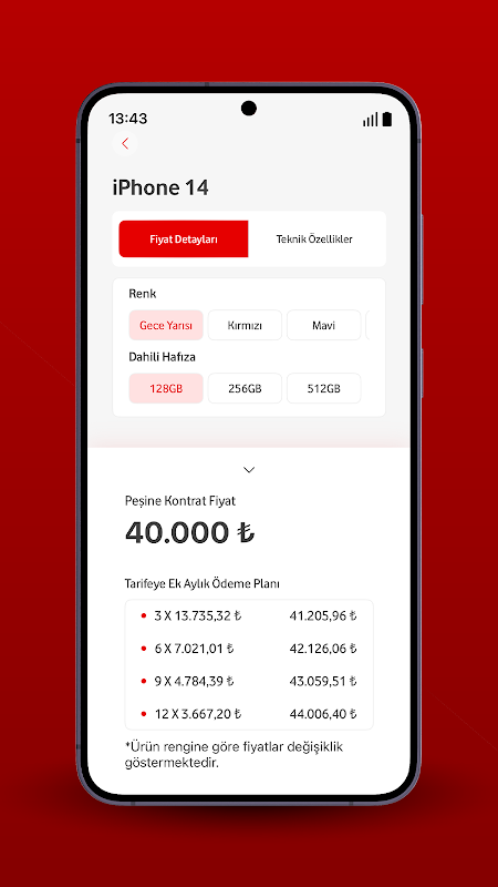• Informazioni sul prezzo di pagamento in contanti e rateale per il dispositivo,