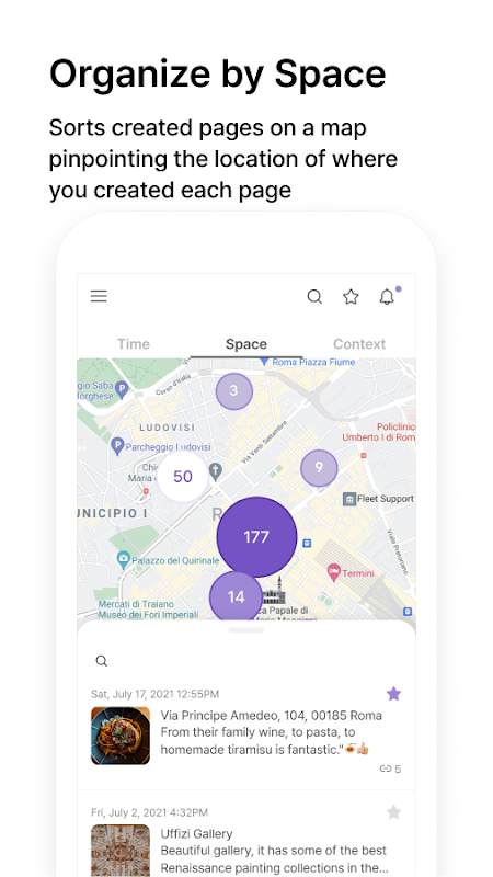 * Organizza i tuoi appunti per tempo, spazio, contesto