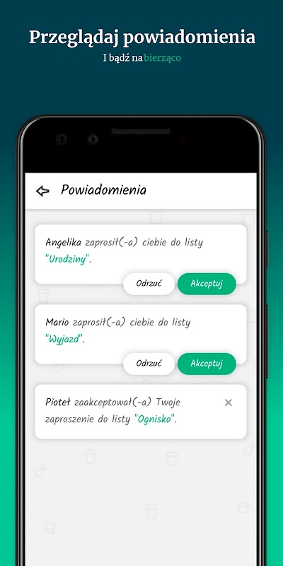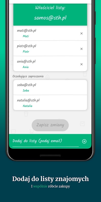 - udostępnianie list rodzinie i znajomymUłatw sobie i bliskim robienie wspólnych zakupów na obiad, urodziny, grill ze znajomymi itp.
