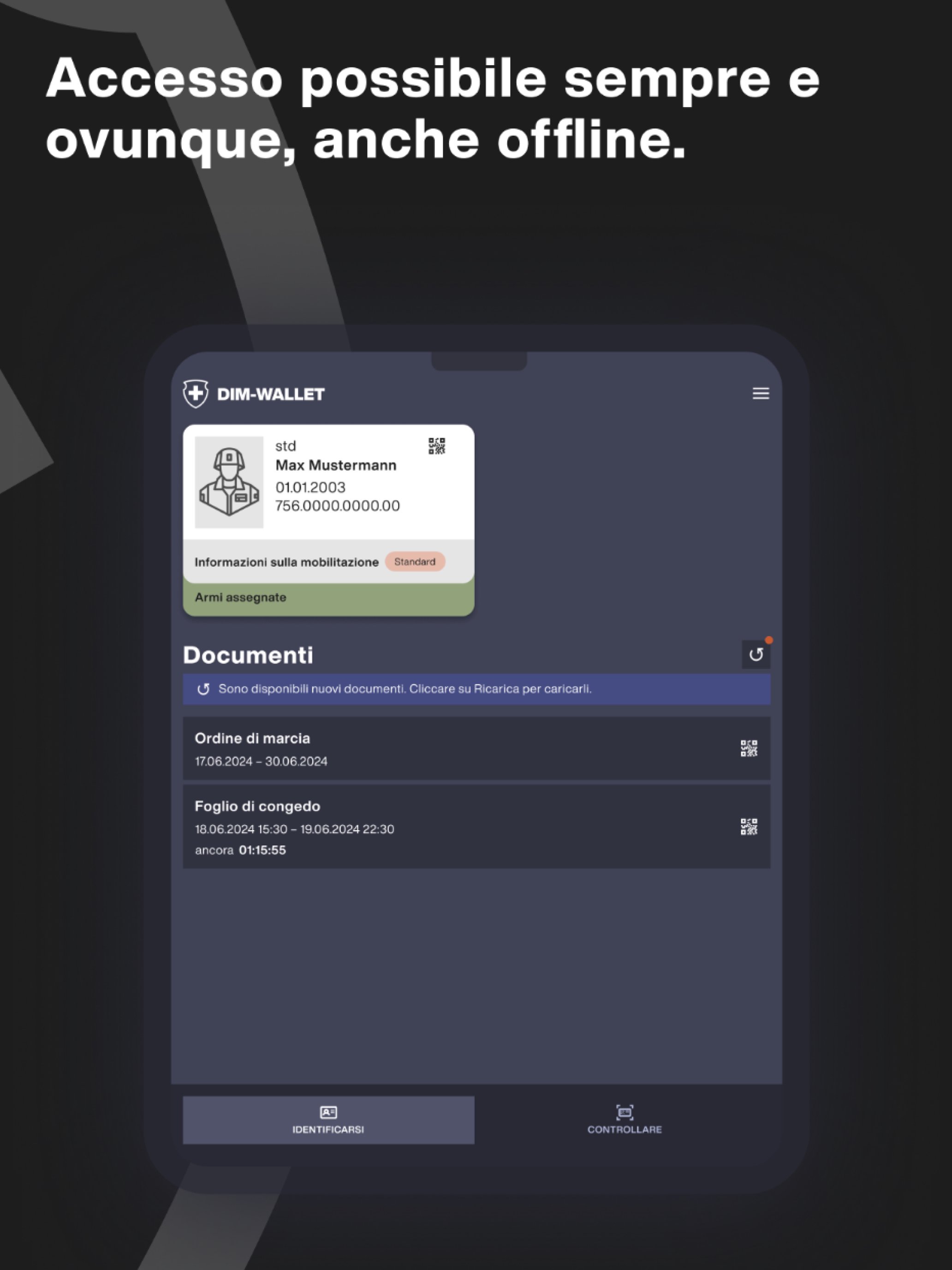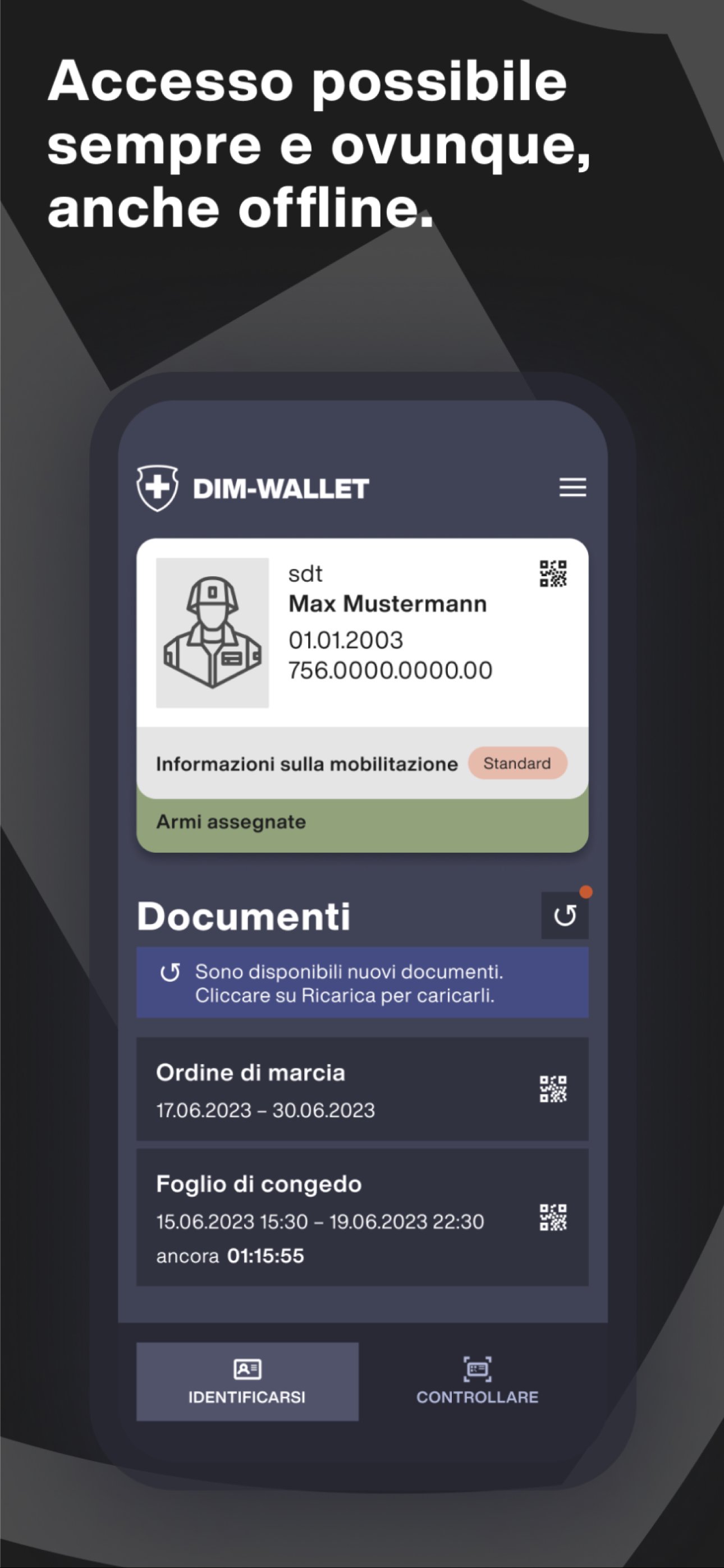 DIM-Wallet consente inoltre di controllare tali documenti durante i rispettivi compiti militari.