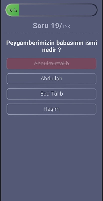 Questa applicazione, che contiene circa 123 domande, registra l'ultima domanda a cui hai risposto. Quindi non ricominciare da capo.