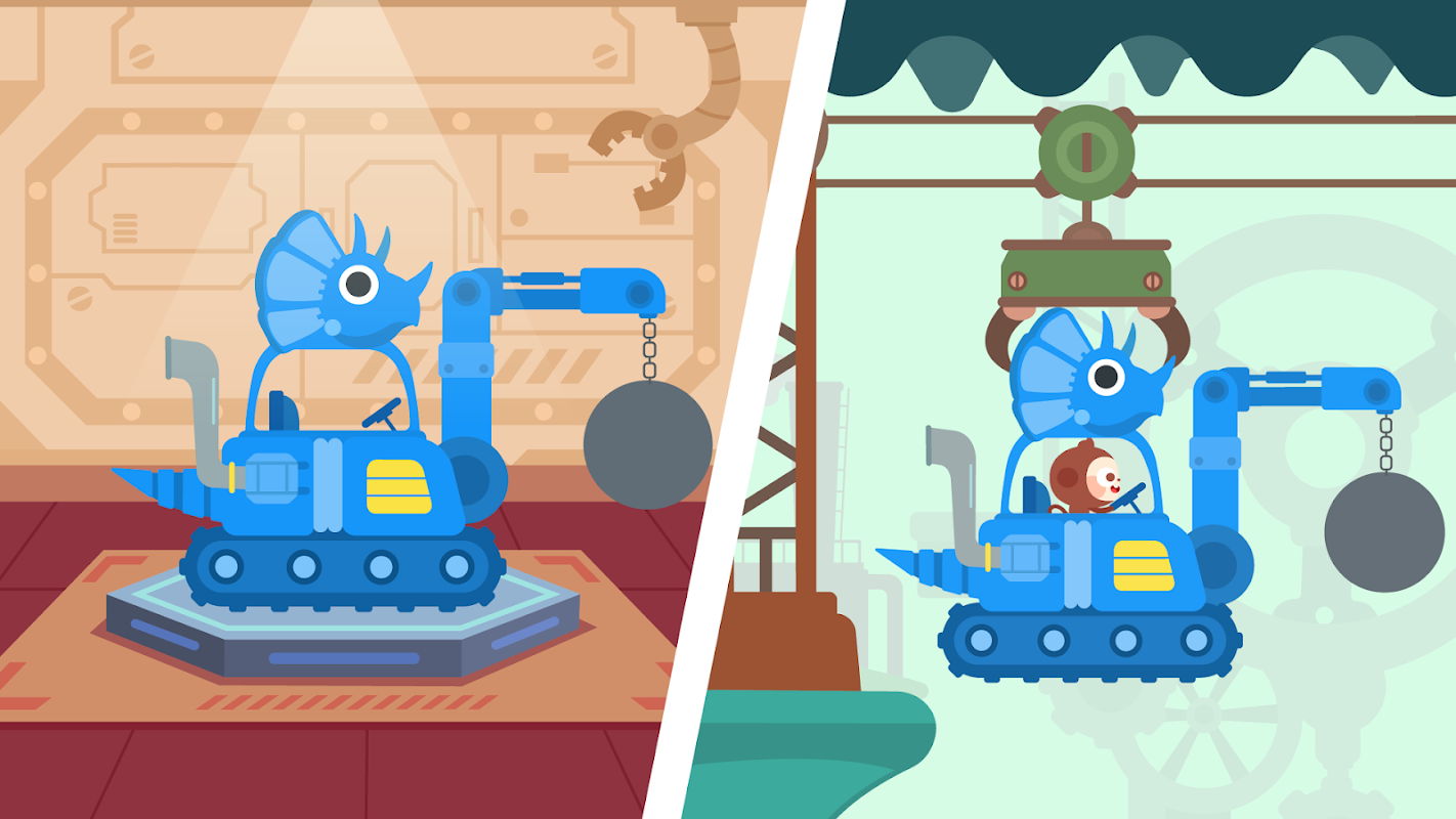 Nella misteriosa e fantastica scena di animazione, i bambini torneranno nel mondo dei dinosauri, sceglieranno una bella macchina meccanica di dinosauro, Triceratops, plesiosauri, Tyrannosaurus rex ed esploreranno nella foresta, terra e mare sconosciuti. Varie gemme preziose e puzzle di dinosauri perduti verranno trovati durante la spedizione di viaggio.