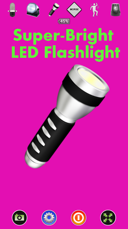 L'applicazione ha molti modi simili; Luce della discoteca, torcia elettrica, luce stroboscopica, Morse, agitare-it, luci di polizia e testo Marquee.