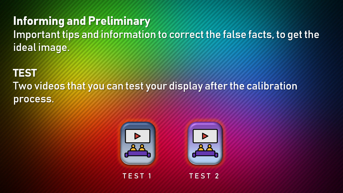 Grazie a questa applicazione è possibile regolare facilmente i controlli complessi che si trovano nelle mappe dei menu di tutti i televisori, proiettori, monitor a definizione HDR di marca con le tecniche corrette agli standard ISF (Imaging Science Foundation), provare il piacere della calibrazione del display utilizzando i suggerimenti.