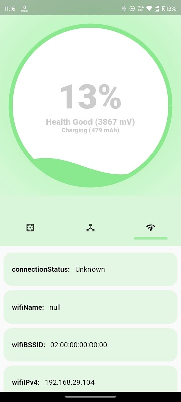 - Reti: informazioni Wi-Fi, rete mobile e Bluetooth.