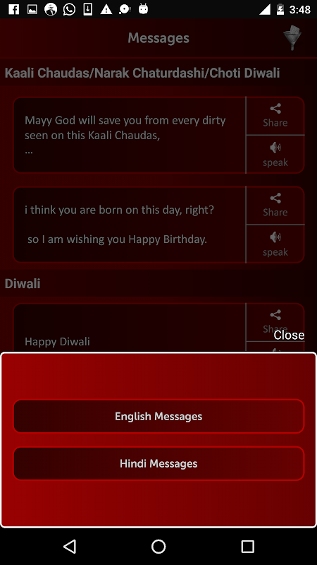 ★ Diwali applicazione ha più di centinaia messaggio di saluto pre-elencati.