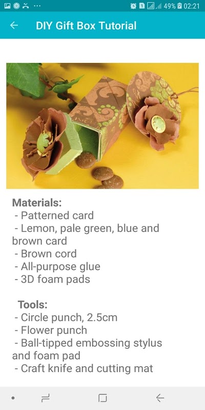 This app is especially designed to give you ideas of creating such DIY gift boxes on your own. It entails several tutorials along with step by step procedures on how to create such personalized boxes to your liking. By viewing them, a stimulation of different ideas will urge you to make your box unique to your own style and personality as well as appropriate to the gift.