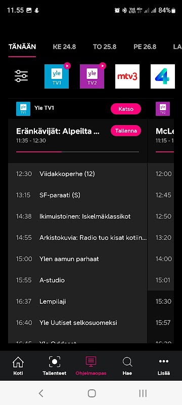 Puoi guardare le tue registrazioni (escl. Nelonen, Liv, Jim, Hero), goderti i contenuti della Biblioteca di intrattenimento e le migliaia di film di Vuokraamo.