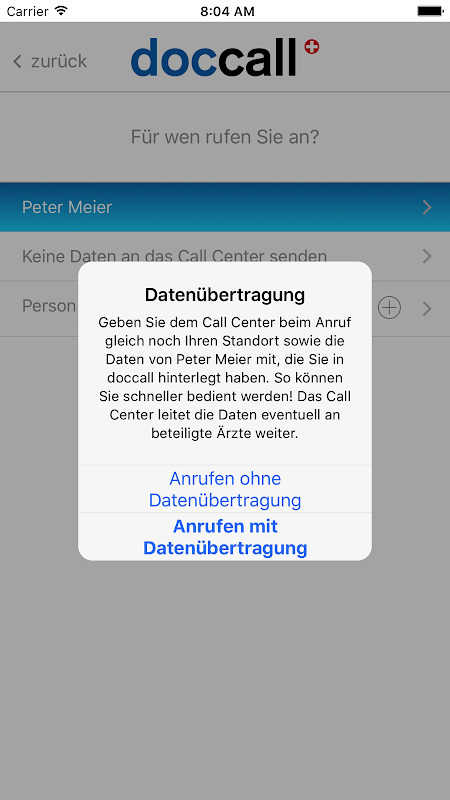 - In case your family doctor is not available: Get support for non-life-threatening emergencies. doccall connects you with the Swiss local medical emergency service