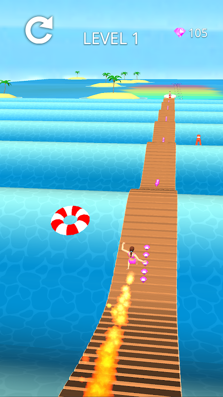 Run from the beach to the banana boat along the wavey dock. Tap and hold to run, release to jump and fly, tap and hold to go down. It's a blast and you'll be zooming away on the banana boat if you nail it. Enjoy!