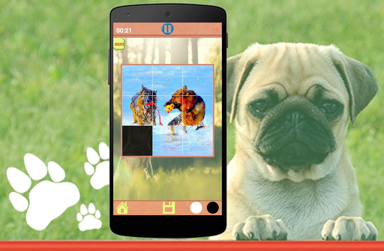 With our sliding puzzles you can enjoy 198 incredible pictures of dogs from around the world or play a personalized puzzle with one of the photos of your mobile.