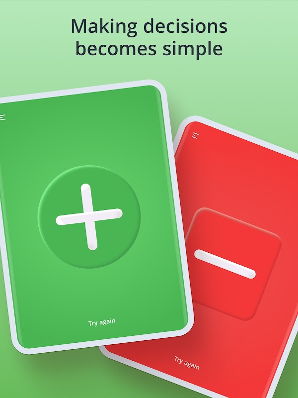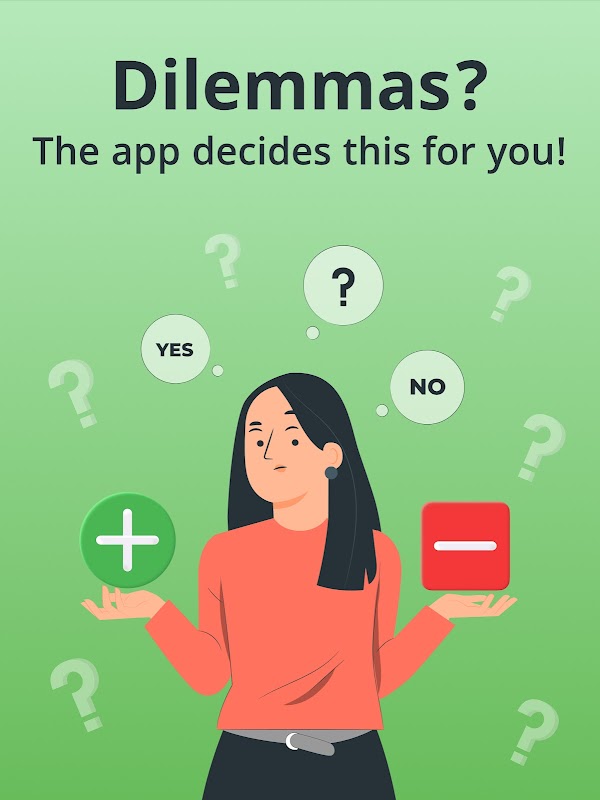 Basta toccare lo schermo per ottenere una decisione positiva o negativa per il tuo dilemma 💚