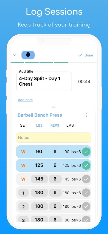 Personalizza i tuoi timer di allenamento e automatizza facilmente i tuoi periodi di riposo tra le serie. Con il nostro design intuitivo e pulito, puoi facilmente monitorare i tuoi progressi verso i tuoi obiettivi di fitness senza note disordinate. Inoltre, senza misteriosi programmi costosi "su misura per te", sei il capo di te stesso quando si tratta della tua routine di fitness.