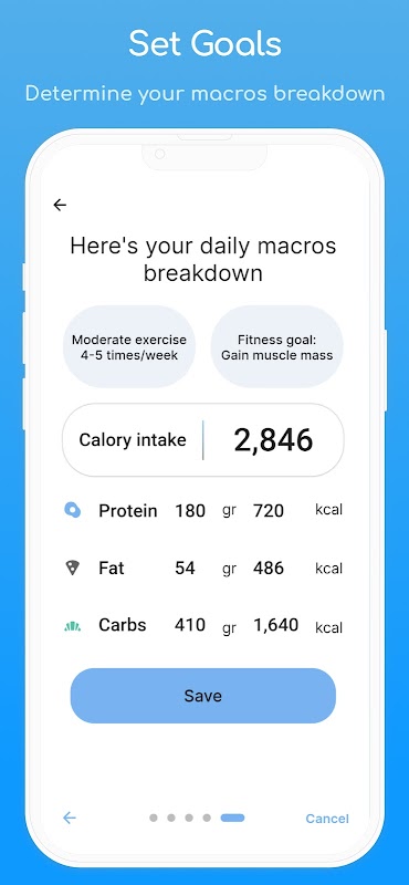 • Tieni traccia delle misurazioni del corpo e dell'assunzione di macronutrienti con registri giornalieri.