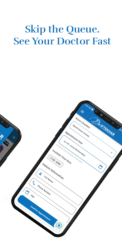 Dr. Iftekher è un'applicazione mobile intelligente e intuitiva, progettata per semplificare la prenotazione degli appuntamenti medici per i pazienti. Con questa app, i pazienti possono prenotare facilmente appuntamenti in base all'ambulatorio medico, a giorni e date specifici, garantendo un'esperienza sanitaria senza intoppi.