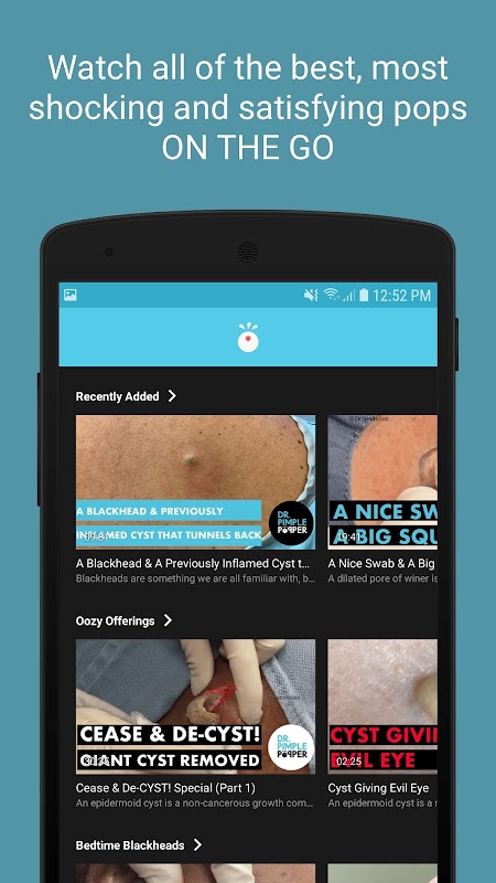 La soddisfazione dello scoppiettio dei brufoli ... sempre e ovunque. Guarda tutti i pop migliori, più scioccanti e soddisfacenti ON THE GO e senza pubblicità. L'app Dr. Pimple Popper porta i migliori video della Dr. Sandra Lee - tutte le cisti e punti neri che puoi immaginare - in un unico posto! Per i migliori #popaholics, sblocca l'accesso esclusivo a nuovi contenuti e filmati dietro le quinte. Tutto questo e ALTRO è in attesa dall'altra parte quando ti iscrivi.