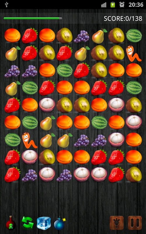 Connect three or more fruits of same kind within a line. More fruits you connect, more scores you will win. New tool such as "Insecticide" and "Bombs", which make this game even more fun to play.