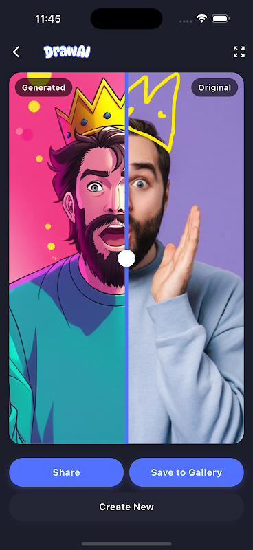 Crea straordinarie opere d'arte con intelligenza artificiale da foto o schizzi con un solo tocco con DrawAI.