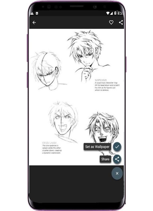 In questa esercitazione di disegno questa applicazione guida le parti del viso che cambiano per esprimere emozioni, quindi procede mostrando come viene raggiunta una vasta gamma di espressioni facciali da disegnare. Questa applicazione ha cercato di includere molte emozioni che sono complesse ma spesso usate, ma in nessun modo rappresenta l'intera gamma di ciò che un volto può esprimere.