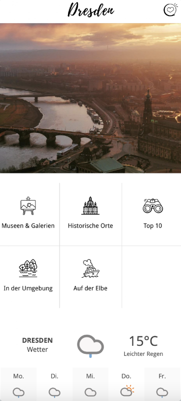 La nostra app guida turistica ti fornisce informazioni complete sulle migliori attrazioni, ristoranti, alloggi ed eventi a Dresda. Organizza il tuo soggiorno perfetto e lasciati incantare dalla bellezza e dalla diversità di questa città unica.