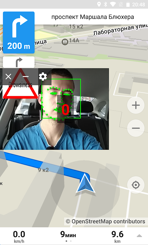 Fornisce avvisi acustici e testuali e genera raccomandazioni pertinenti basate sul contesto per consentire a un conducente di evitare possibili incidenti stradali per prestare attenzione alla situazione. L'applicazione utilizza una fotocamera frontale e sensori integrati nello smartphone, inclusi GPS, accelerometro, giroscopio, magnetometro e microfono. A seconda della situazione in cui si trova il conducente e delle informazioni sul suo profilo, l'applicazione genera raccomandazioni contestuali, che aiutano a ridurre il tasso di incidenti e ad aumentare il comfort di marcia durante la guida.