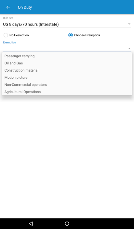 L'applicazione permette agli utenti di registrare, visualizzare, modificare e tenere traccia di turno, Guidare, fuori servizio e Sleeper-ancoraggio stati dovere in un giornale di bordo. L'applicazione supporta US set di regole HOS federali e intrastatali: EUR 8/70, Stati Uniti 7/60, TX, FL, OR, AK, WA, NY, WI, IL. L'applicazione supporta anche il Canada ciclo-1. Sono supportate anche le esenzioni federali come il trasporto dei passeggeri, petrolio e gas, materiale da costruzione, del cinema, i conducenti non CDL e le operazioni agricole. L'applicazione contiene disposizioni per annotare i tempi di guida come mezzo di trasporto personale e di cantiere si muove. HOS registri dal app possono essere inviati via e-mail ai funzionari di sicurezza durante le ispezioni.