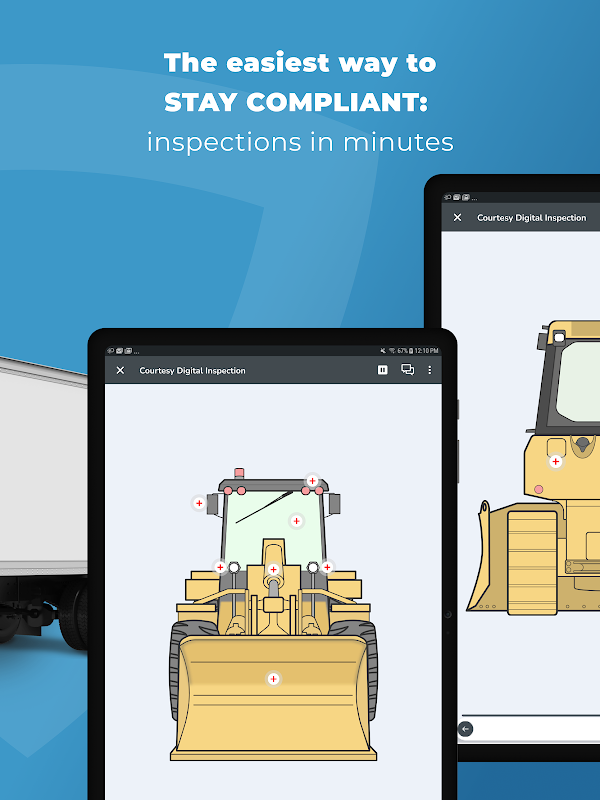La tecnologia della flotta Driveroo si basa sull'ispezione. Dimentica carta e penna: tutte le ispezioni sono completamente mobili e digitali, il che significa meno logistica, record online e tempi di ispezione 10 volte più veloci. Le ispezioni giornaliere della flotta (eDVIR) vengono eseguite sui telefoni del conducente o sui dispositivi mobili: i conducenti toccano semplicemente i diagrammi dei veicoli per ispezionare e aggiungere commenti. La nostra tecnologia intuitiva Turbographics™ richiede poco tempo di formazione e riduce gli errori. Con le nuove funzionalità come la voce in testo e le immagini illimitate, le ispezioni sono il più dettagliate possibile, identificando i problemi e riducendo le possibilità di errore. Le ispezioni sono supportate dalla tecnologia AI per valutare in modo proattivo le riparazioni comuni. Driveroo rende le ispezioni della flotta facili e indolori.
