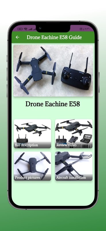 Puoi trovare tutti i dettagli di cui hai bisogno sul Drone Eachine E58 in questa app.