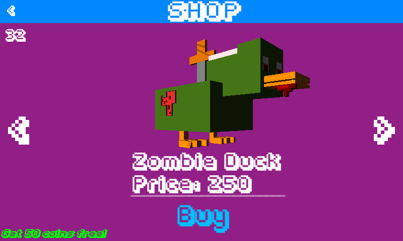 If you can't play that much and you really want an expensive duck, you can watch an ad and get 50 Coins for free!