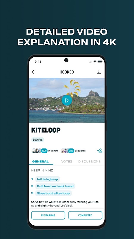 - Carica i tuoi trucchi e ricevi voti dalla community di kitesurf