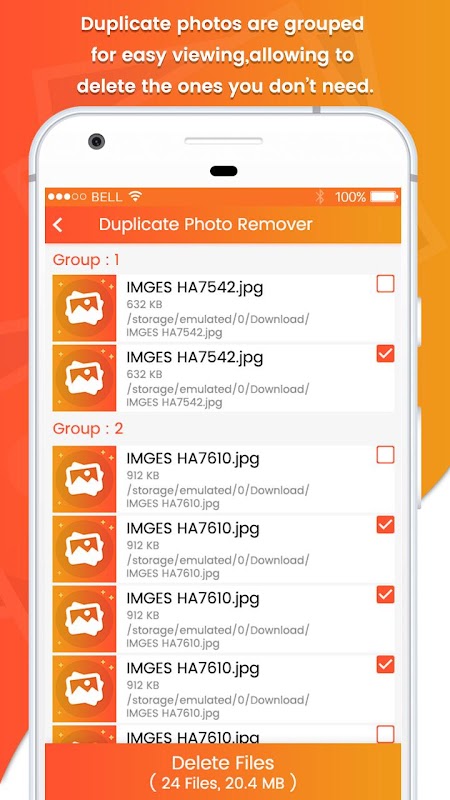 - Scan through your entire phone and find duplicate images/picture & photos.