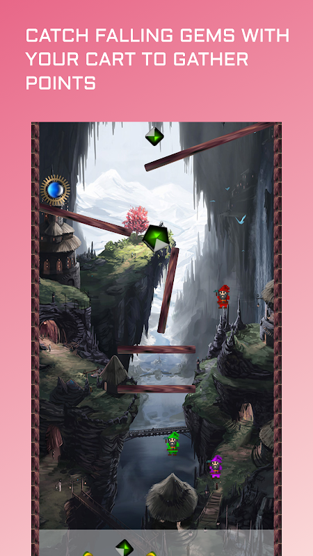 Sposta il tuo carrello e cattura le gemme ed evita i nani.