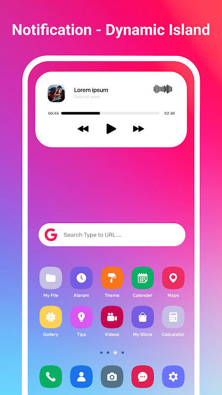 👉 Puoi controllare lo snoozing della sveglia, la musica, la chiamata wap, la chiamata telegram, la percentuale di addebito, gli SMS, le e-mail aziendali e molte altre cose importanti nell'app dinamica dell'isola di Android.