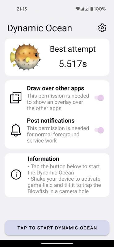 Dynamic Ocean is a simple game, that implements an idea of utilizing camera hole as an element of gameplay. Just like the the iPhones Dynamic Island, but in a little bit different manner :)