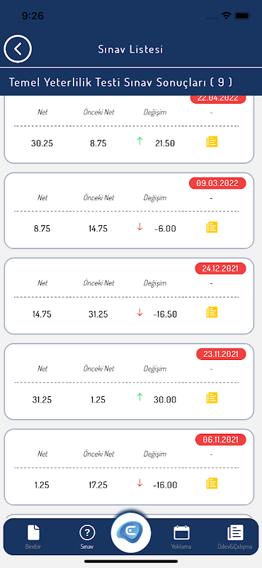 Öğretmenlerin girdikleri sınıflara ait sınav sonuçlarına ulaşmaları sağlandı.