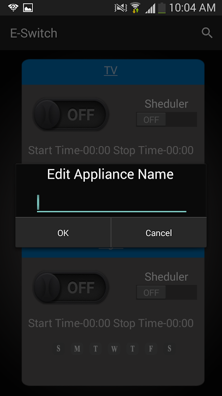 - Now you can control the home automation device by using E-Switch app, you can ON/OFF or SCHEDULE the device for week or day wise and possible to monitor the system time, For the security you can set the password