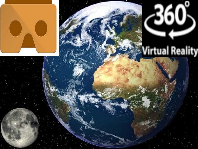 Earth Moon VR 360 cardboard offer an exciting journey. You can see the moon and the earth and enjoy the environment using your VR glasses.